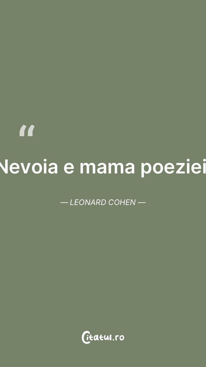 Nevoia e mama poeziei. Leonard Cohen ...