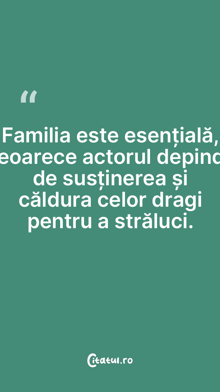 Familia este esențială, deoarece actorul depinde de susținerea și căldura celor dragi pentru a străluci.
