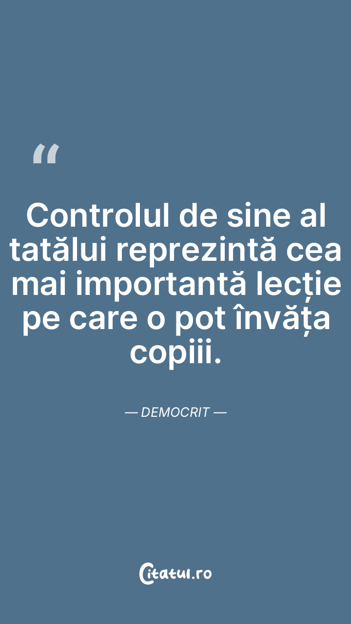 Controlul de sine al tatălui reprezintă cea mai importantă lecție pe care o pot învăța copiii. Democrit