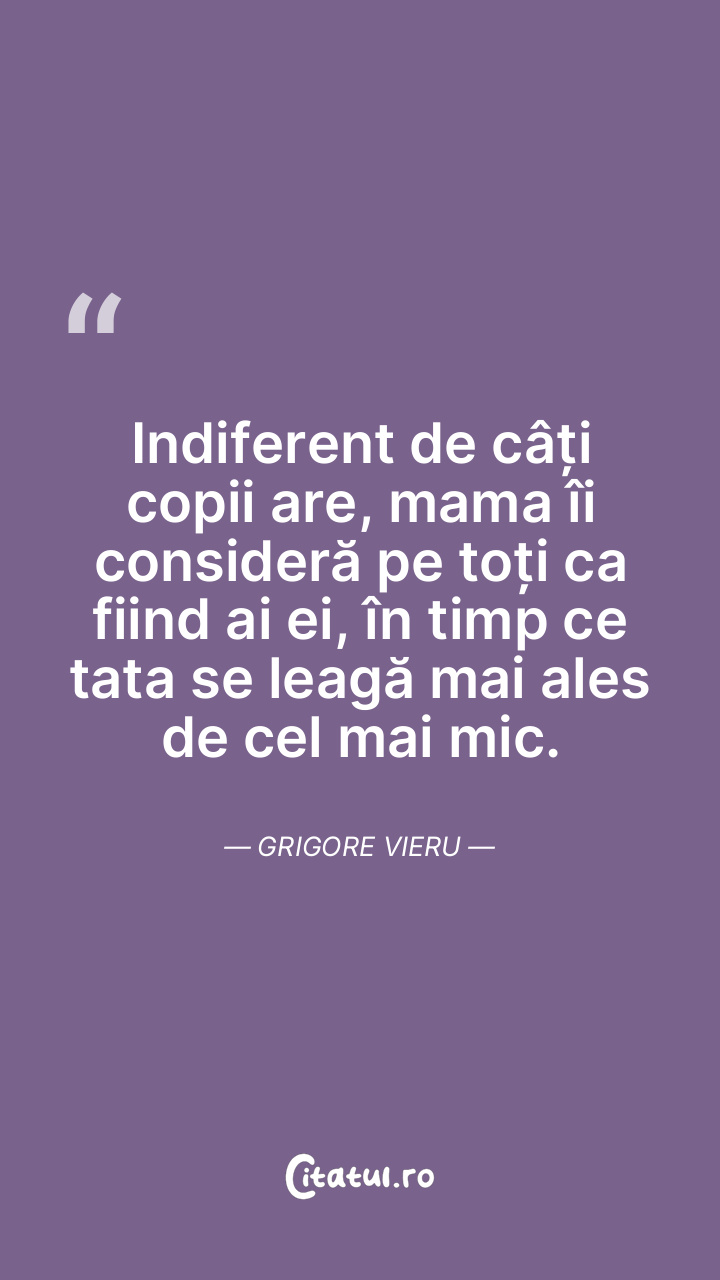 Indiferent de câți copii are, mama îi consideră pe toți ca fiind ai ei, în timp ce tata se leagă mai ales de cel mai mic. Grigore Vieru