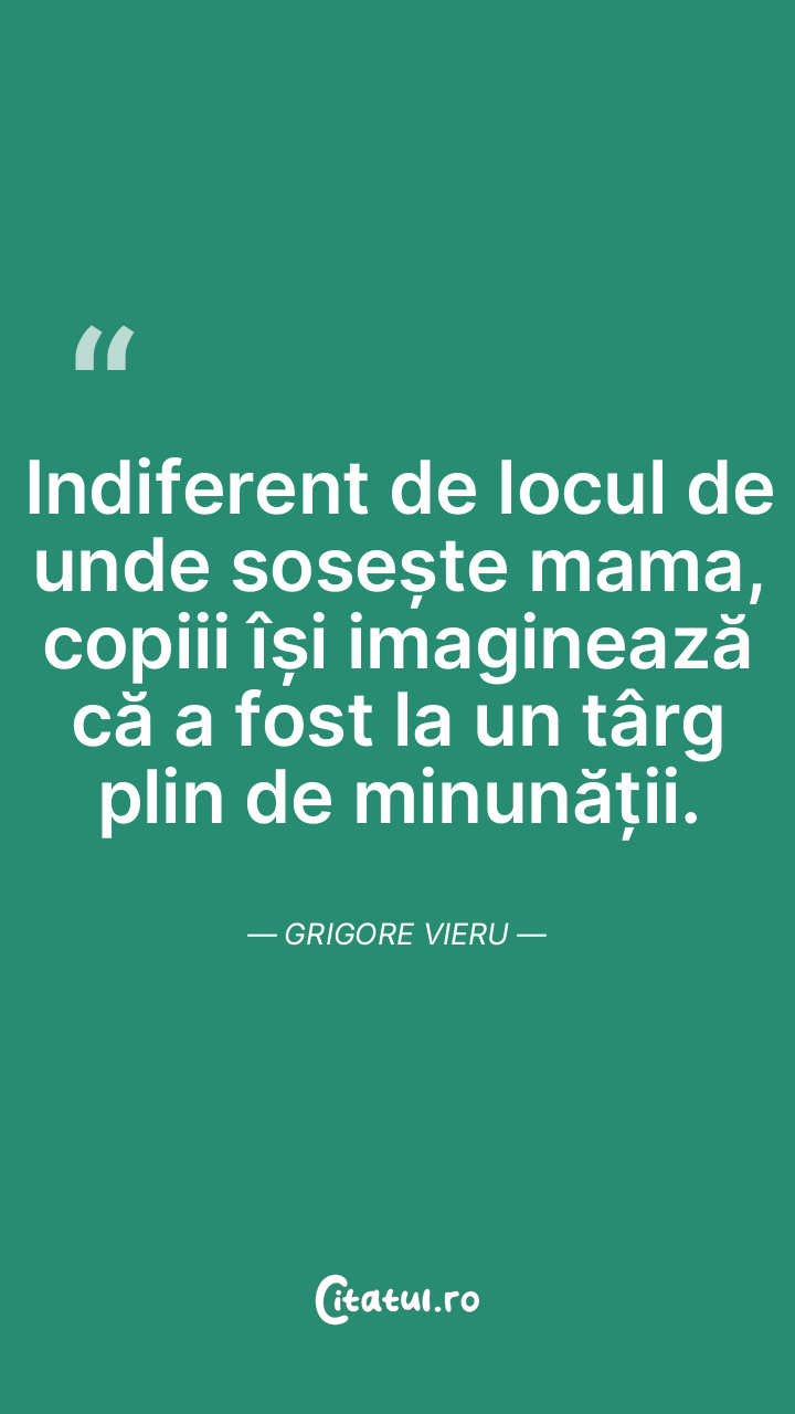 Indiferent de locul de unde sosește mama, copiii își imaginează că a fost la un târg plin de minunății. Grigore Vieru