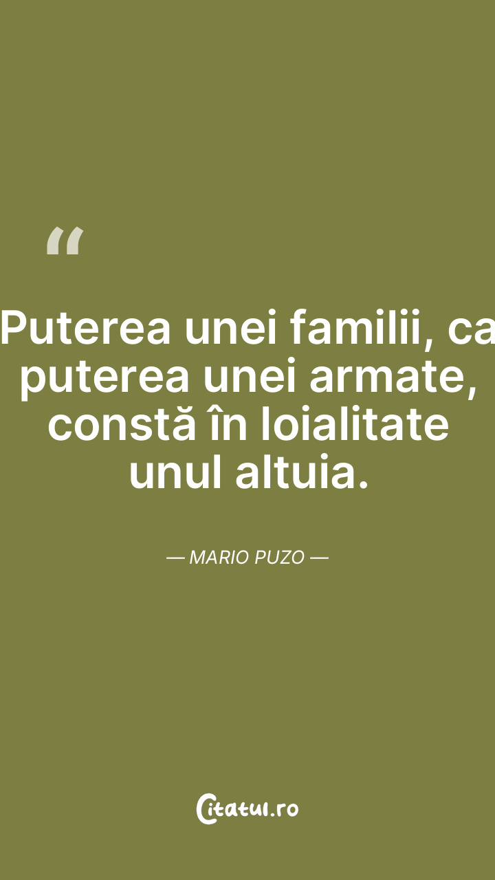 Puterea unei familii, ca puterea unei armate, constă în loialitate unul altuia. Mario Puzo