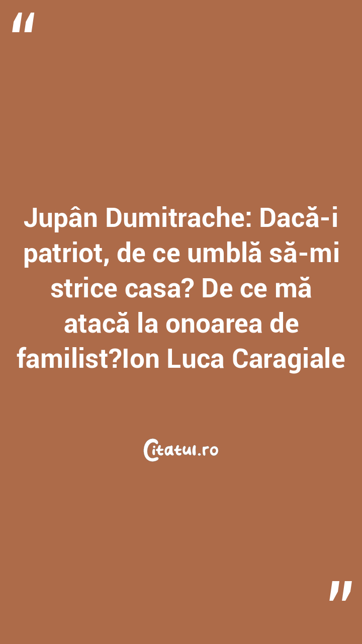Jupân Dumitrache: Dacă-i patriot, de ce umblă să-mi strice casa? De ce mă atacă la onoarea de familist? Ion Luca Caragiale