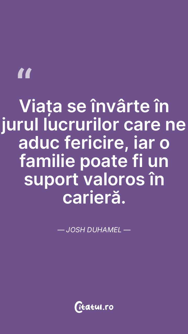 Viața se învârte în jurul lucrurilor care ne aduc fericire, iar o familie poate fi un suport valoros în carieră. Josh Duhamel