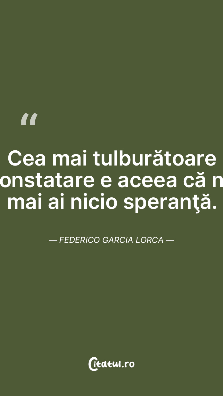Cea mai tulburătoare constatare e aceea că nu mai ai nicio speranţă. Federico Garcia Lorca