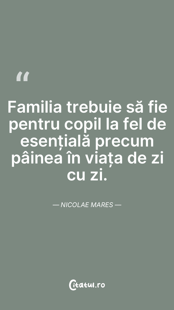 Familia trebuie să fie pentru copil la fel de esențială precum pâinea în viața de zi cu zi. Nicolae Mares