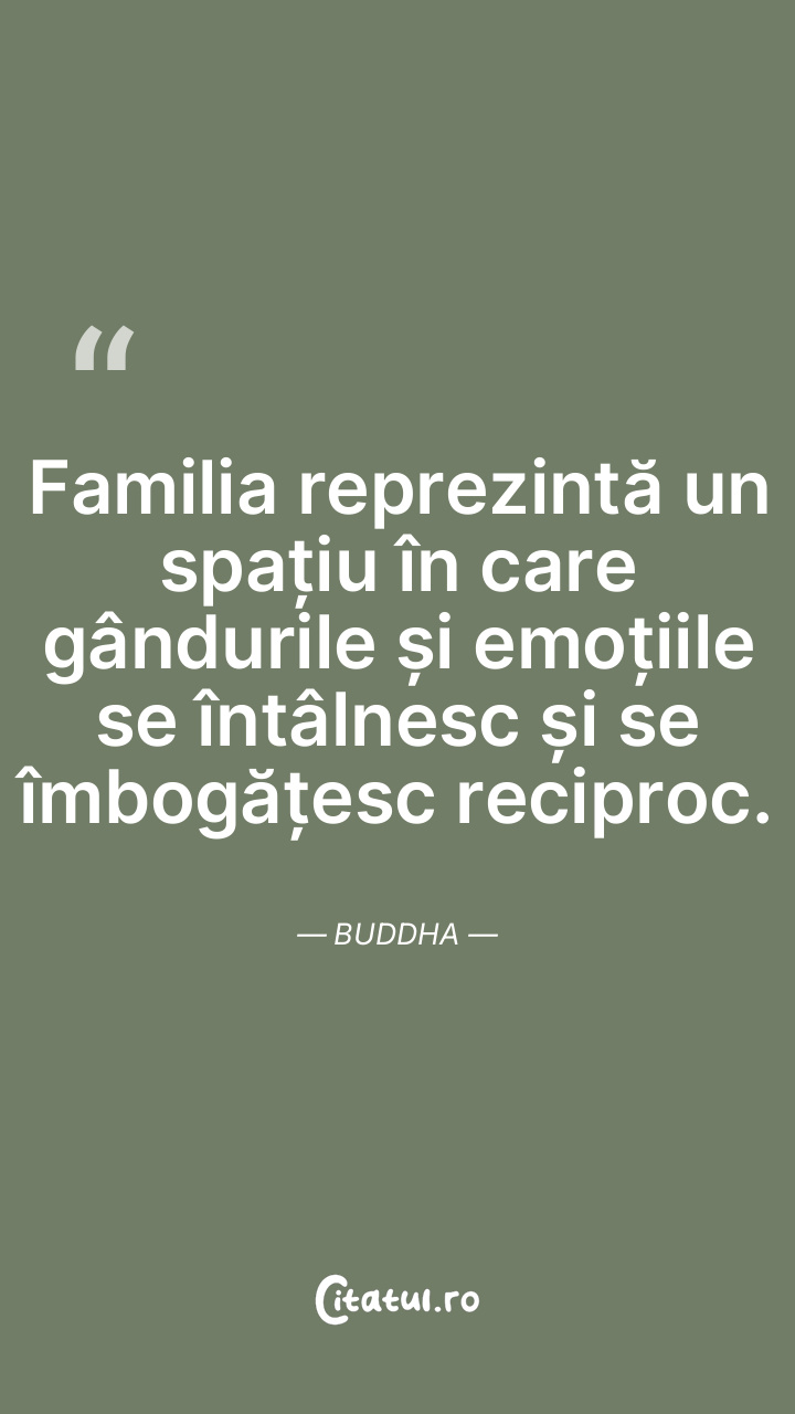 Familia reprezintă un spațiu în care gândurile și emoțiile se întâlnesc și se îmbogățesc reciproc. Buddha