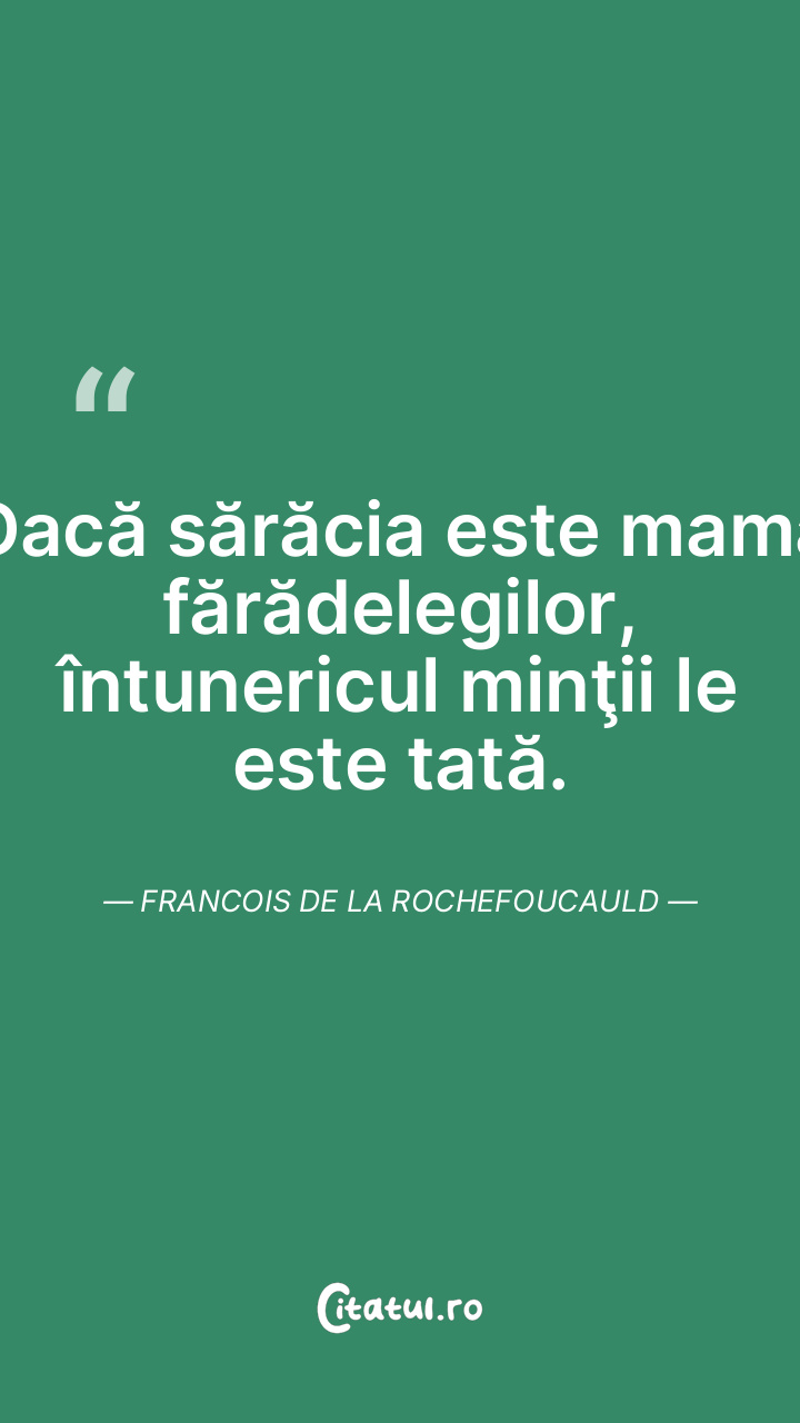 Dacă sărăcia este mama fărădelegilor, întunericul minţii le este tată. Francois de la Rochefoucauld