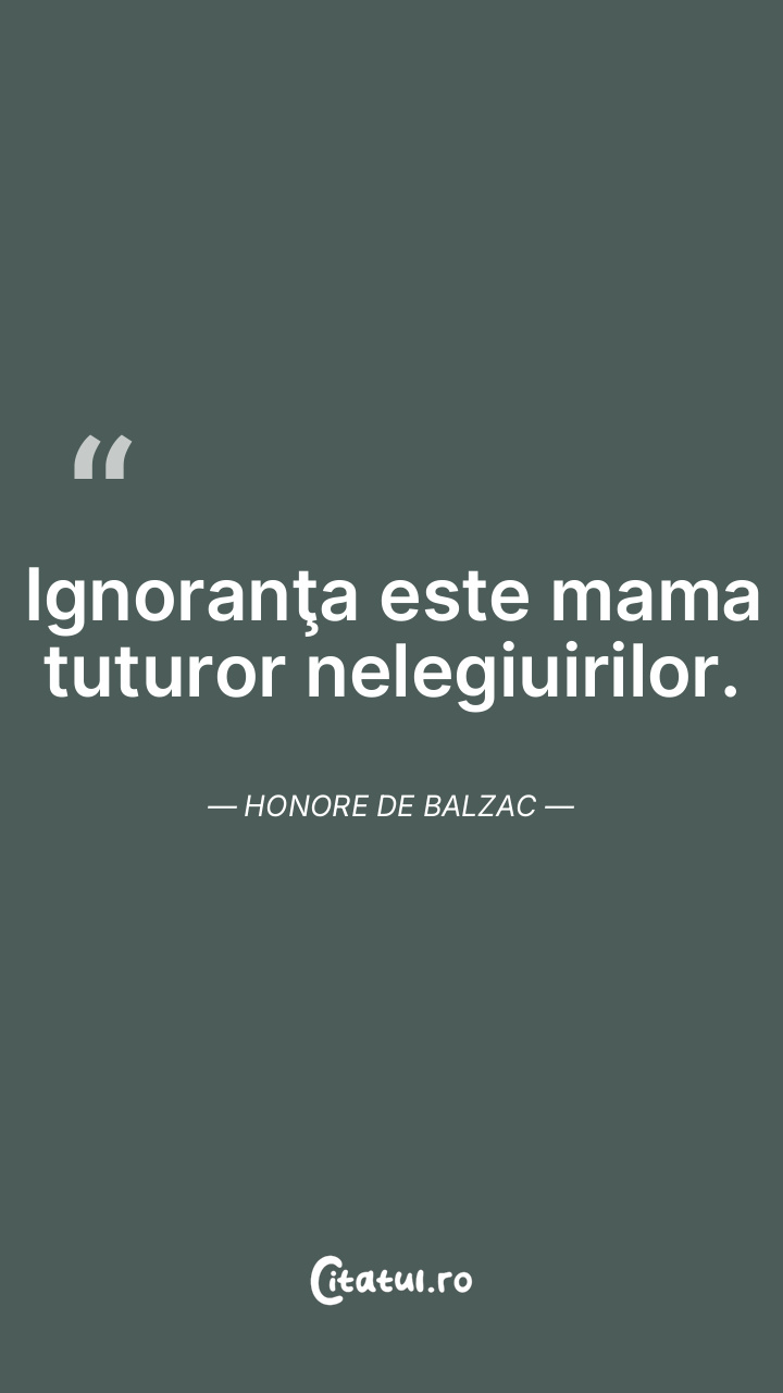 Ignoranţa este mama tuturor nelegiuirilor. Honore de Balzac
