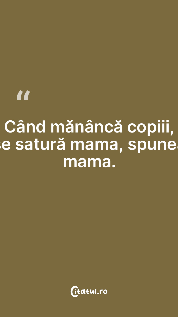 Când mănâncă copiii, se satură mama, spunea mama. ...