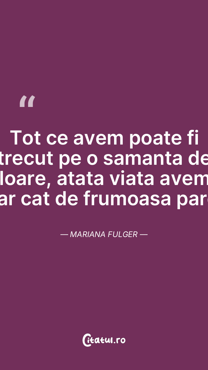 Tot ce avem poate fi trecut pe o samanta de floare, atata viata avem, dar cat de frumoasa pare. Mariana Fulger