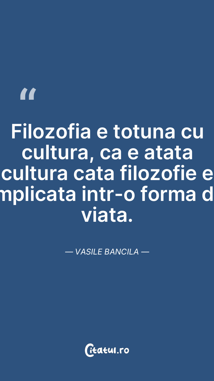 Filozofia e totuna cu cultura, ca e atata cultura cata filozofie e implicata intr-o forma de viata. Vasile Bancila