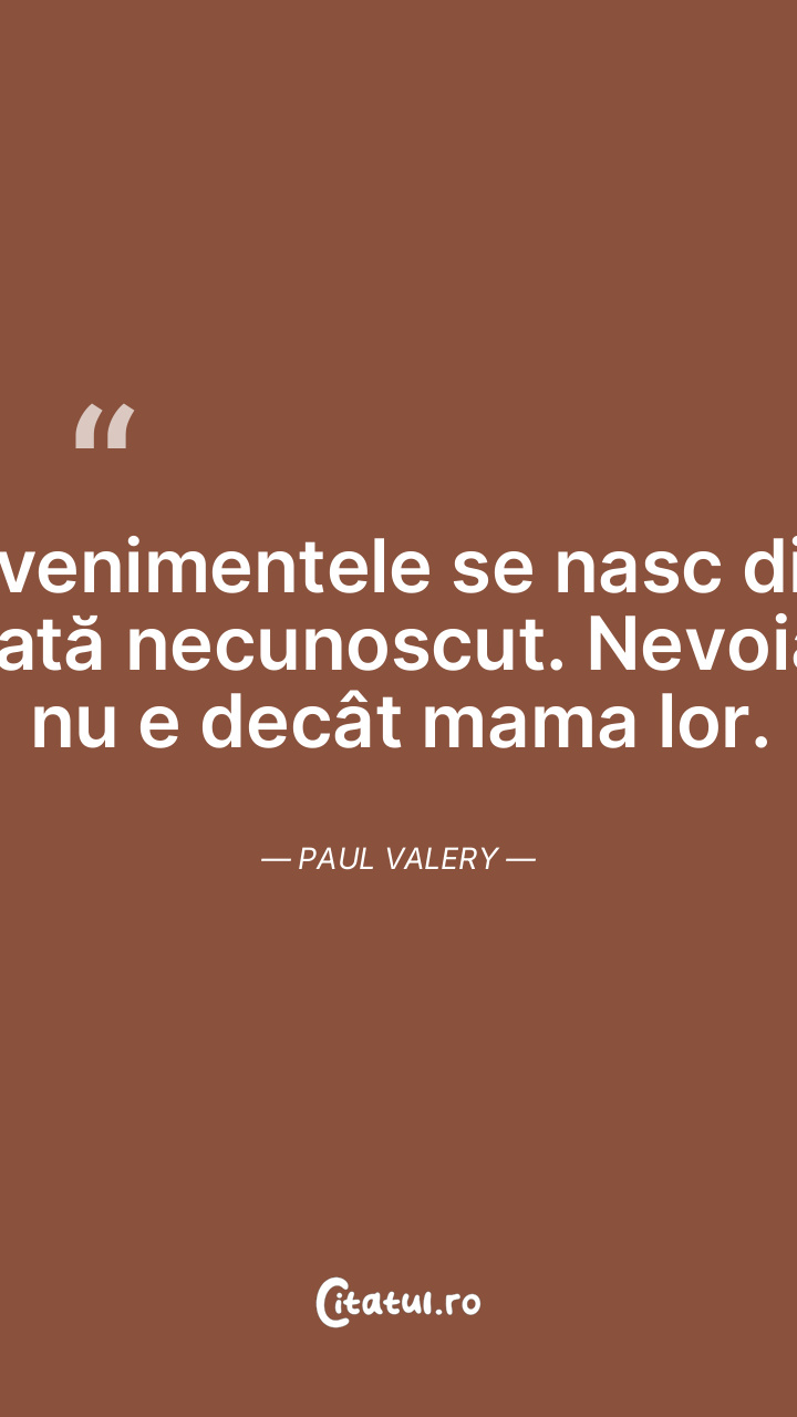 Evenimentele se nasc din tată necunoscut. Nevoia nu e decât mama lor. Paul Valery