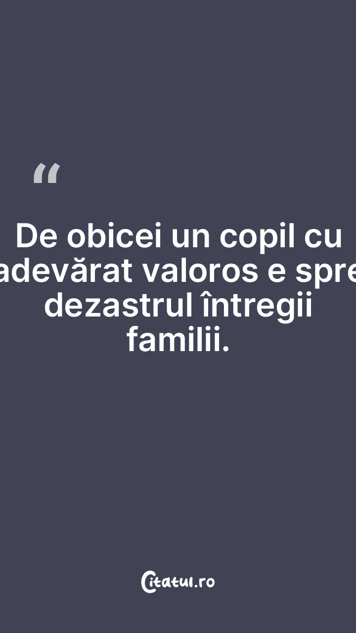 De obicei un copil cu adevărat valoros e spre dezastrul întregii familii.