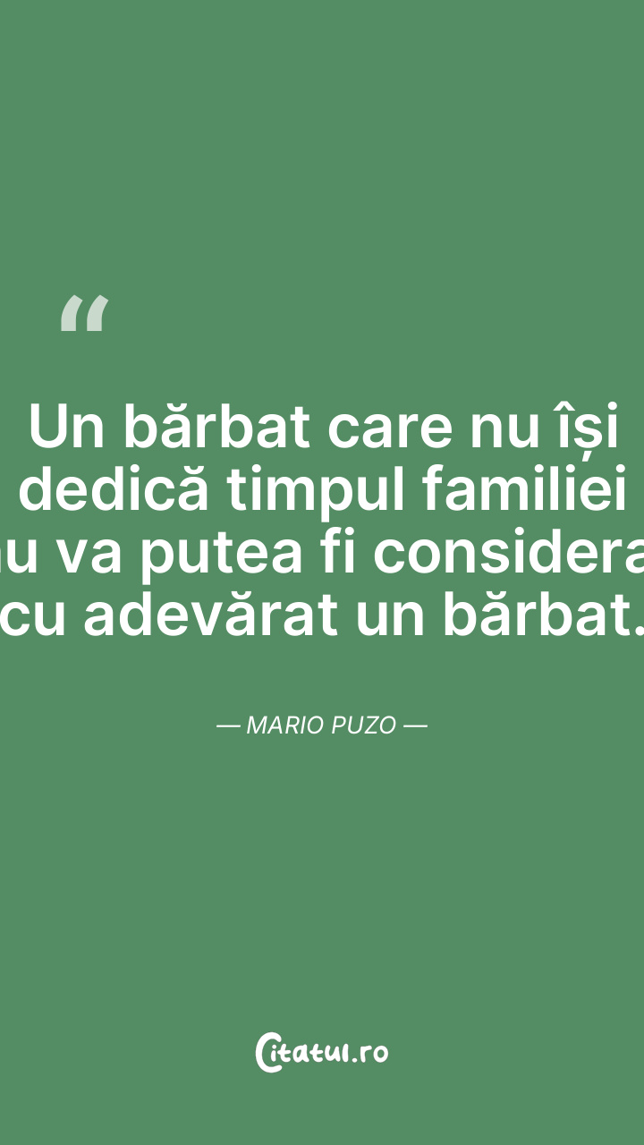 Un bărbat care nu își dedică timpul familiei nu va putea fi considerat cu adevărat un bărbat. Mario Puzo
