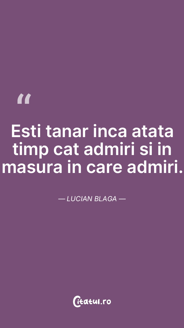 Esti tanar inca atata timp cat admiri si in masura in care admiri. Lucian Blaga