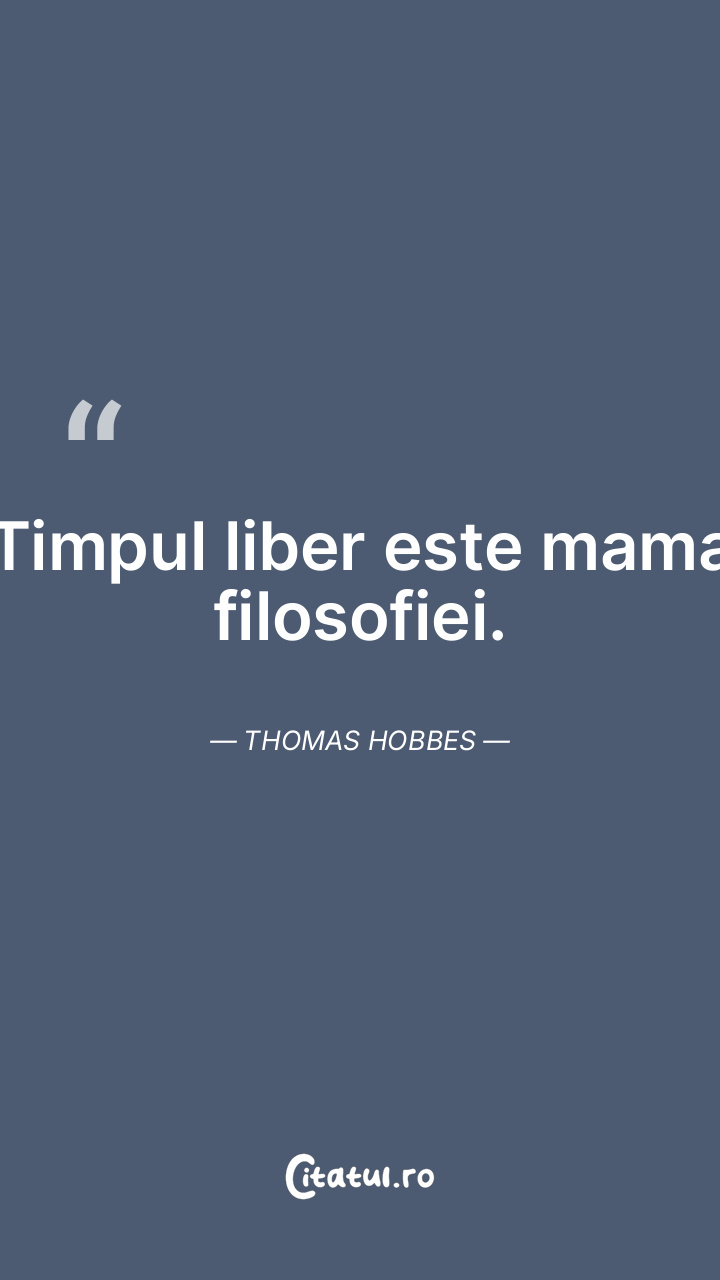 Timpul liber este mama filosofiei. Thomas Hobbes ...