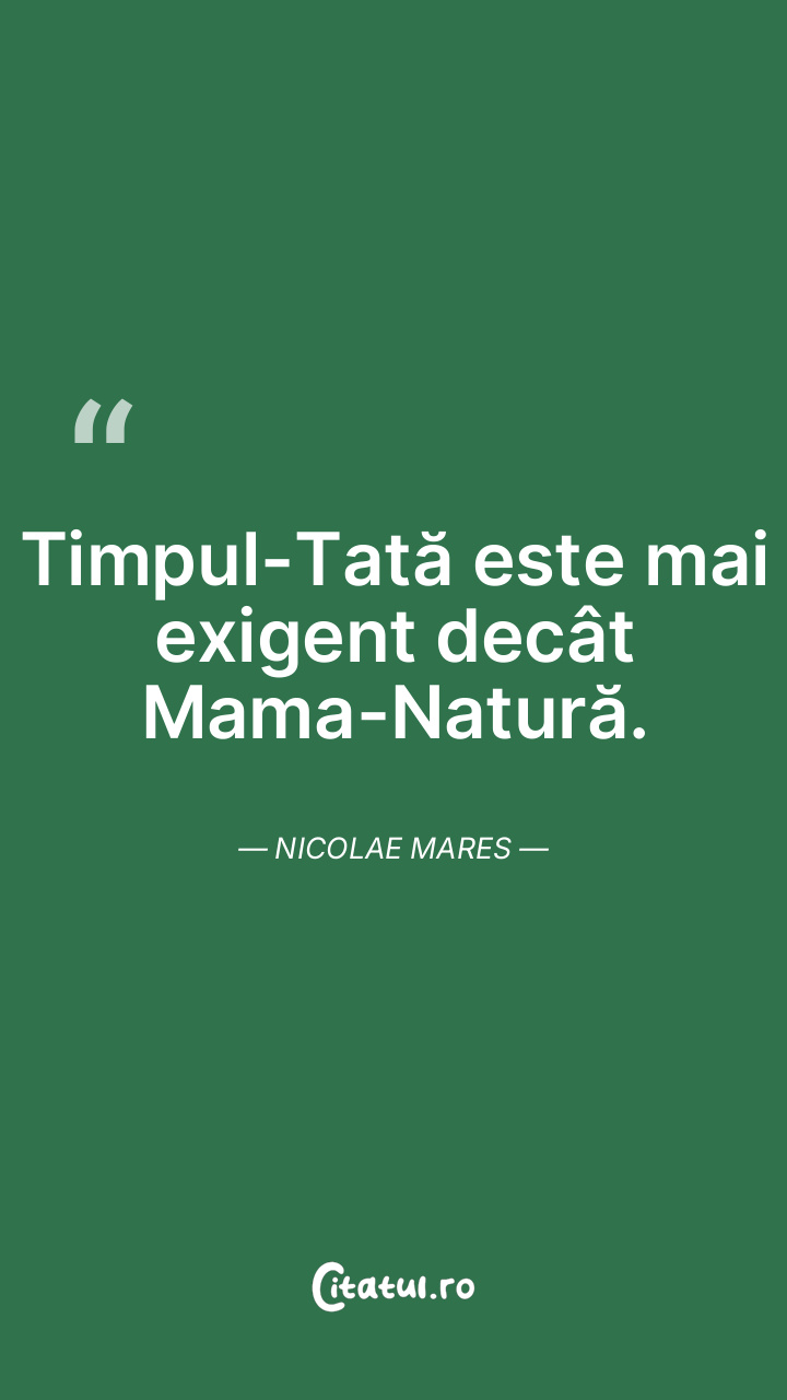 Timpul-Tată este mai exigent decât Mama-Natură. Ni...
