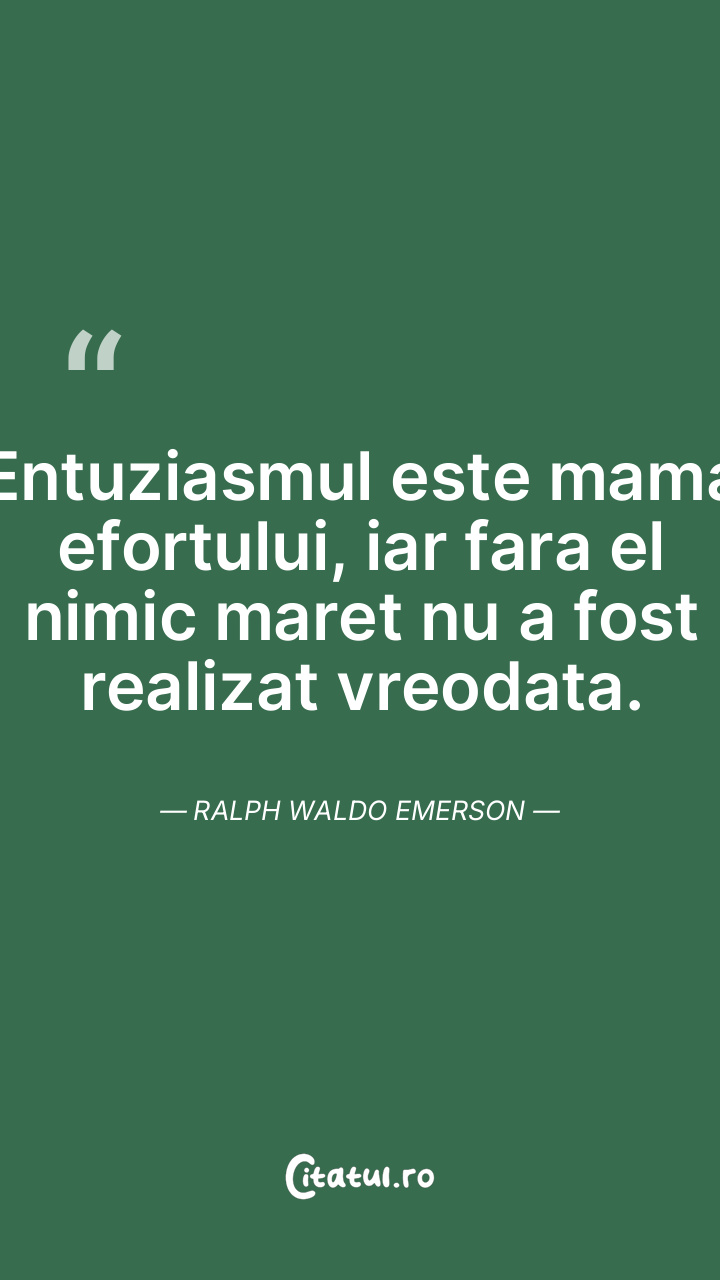 Entuziasmul este mama efortului, iar fara el nimic maret nu a fost realizat vreodata. Ralph Waldo Emerson