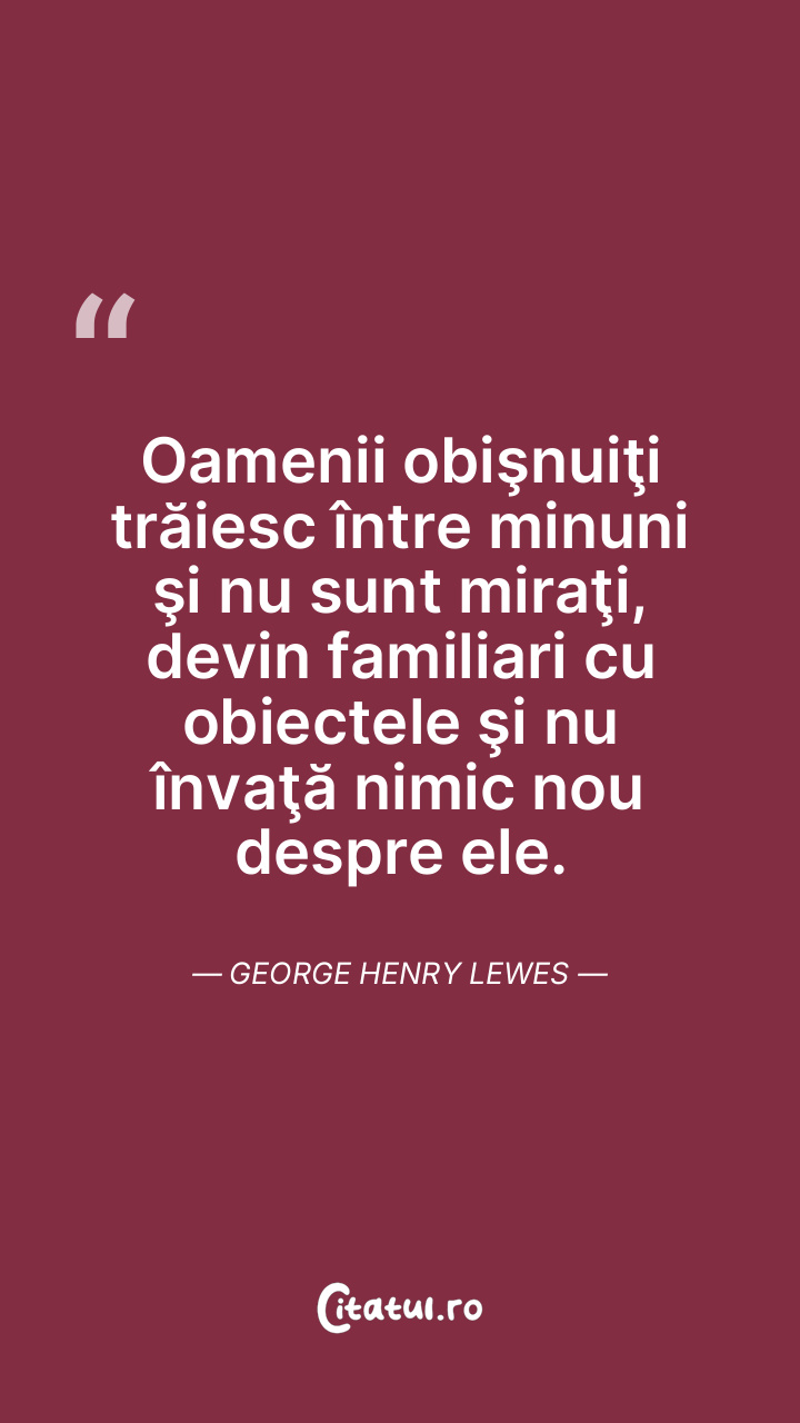 Oamenii obişnuiţi trăiesc între minuni şi nu sunt miraţi, devin familiari cu obiectele şi nu învaţă nimic nou despre ele. George Henry Lewes