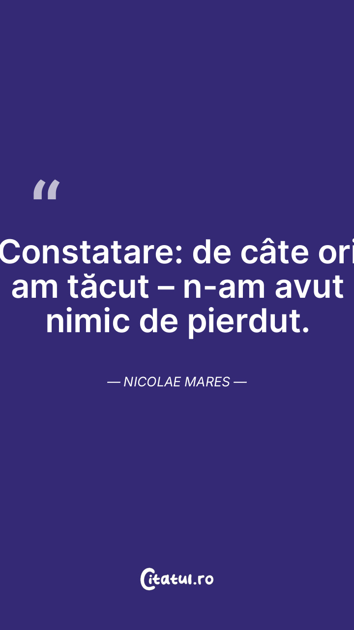 Constatare: de câte ori am tăcut – n-am avut nimic de pierdut. Nicolae Mares