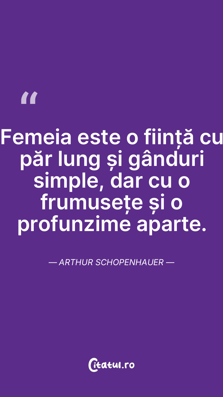 Femeia este o ființă cu păr lung și gânduri simple, dar cu o frumusețe și o profunzime aparte. Arthur Schopenhauer