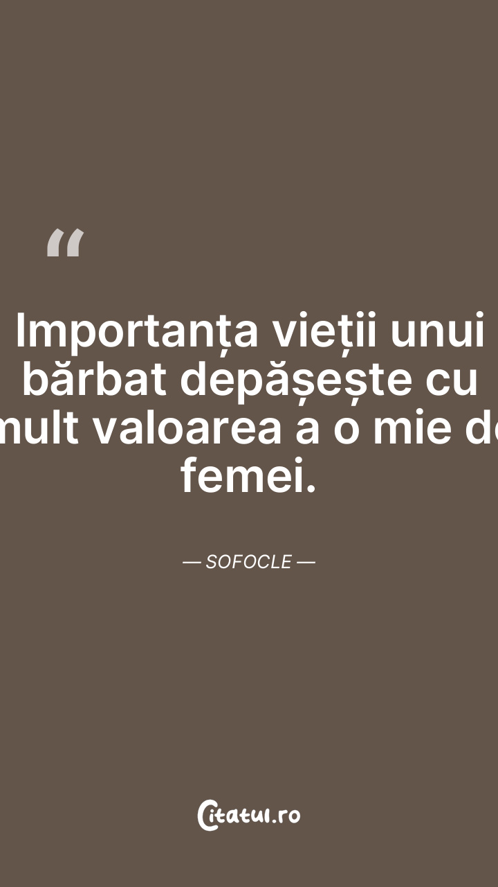 Importanța vieții unui bărbat depășește cu mult valoarea a o mie de femei. Sofocle