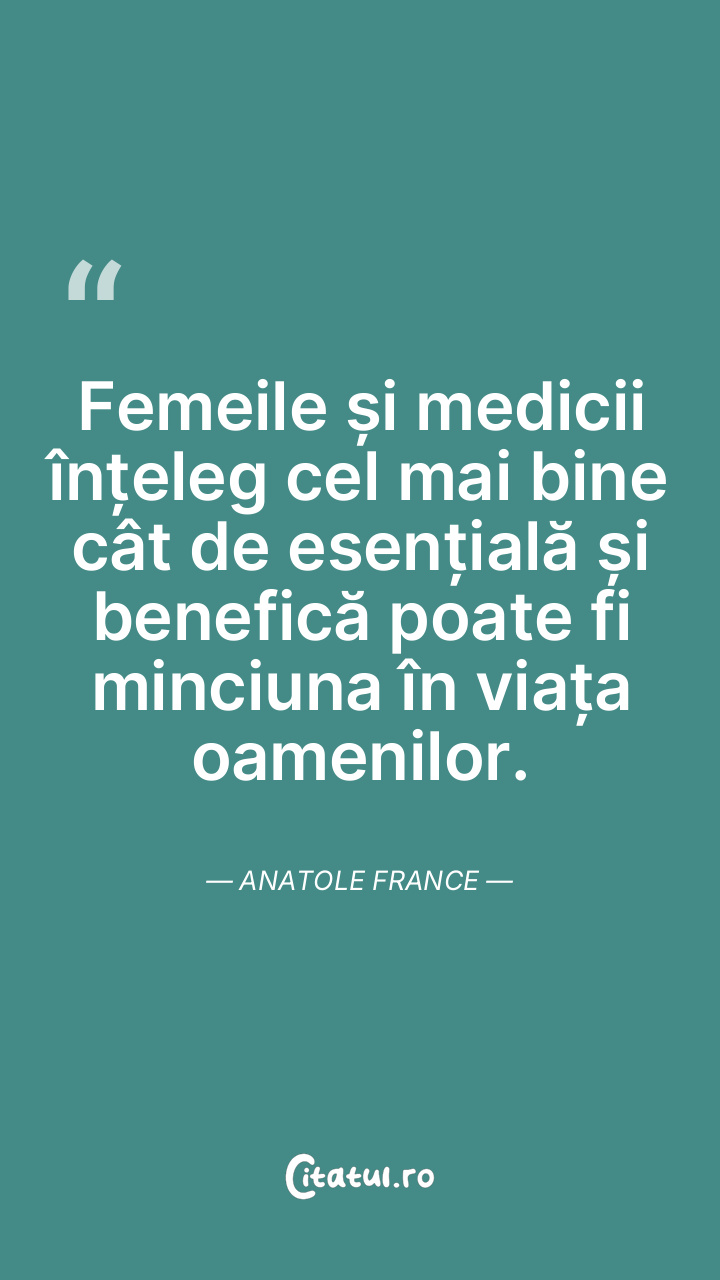 Femeile și medicii înțeleg cel mai bine cât de esențială și benefică poate fi minciuna în viața oamenilor. Anatole France