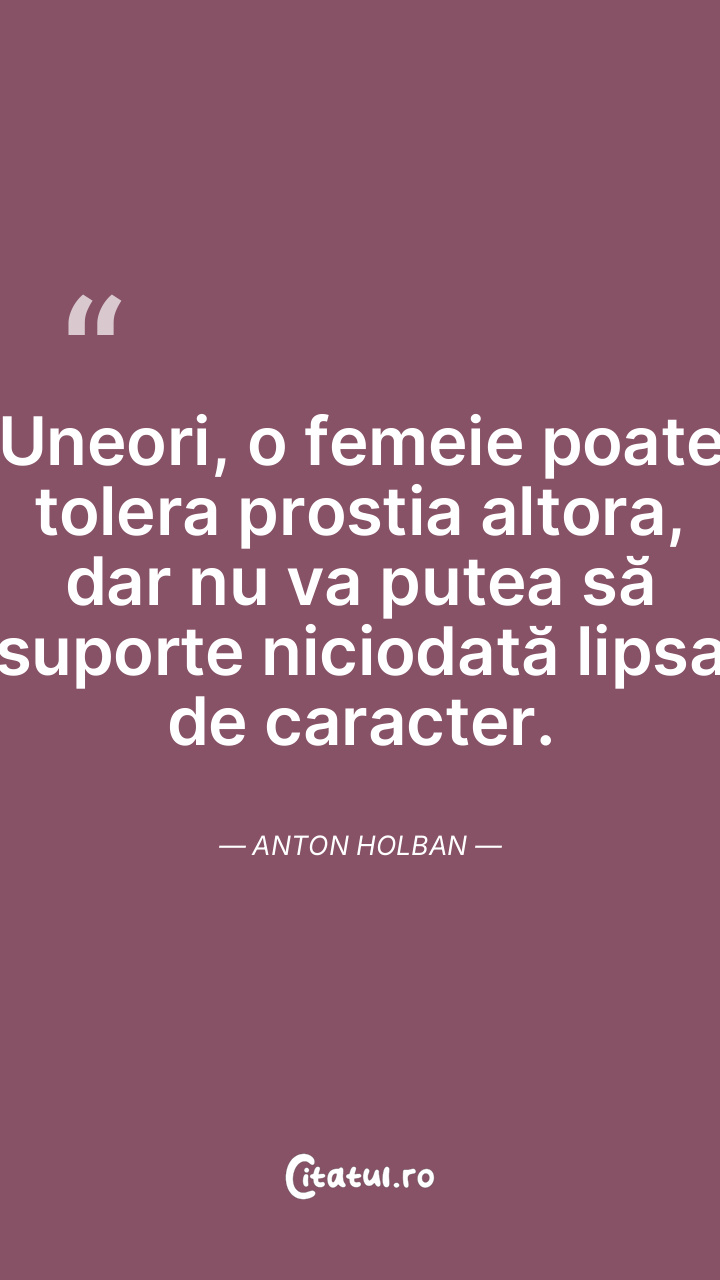 Uneori, o femeie poate tolera prostia altora, dar nu va putea să suporte niciodată lipsa de caracter. Anton Holban