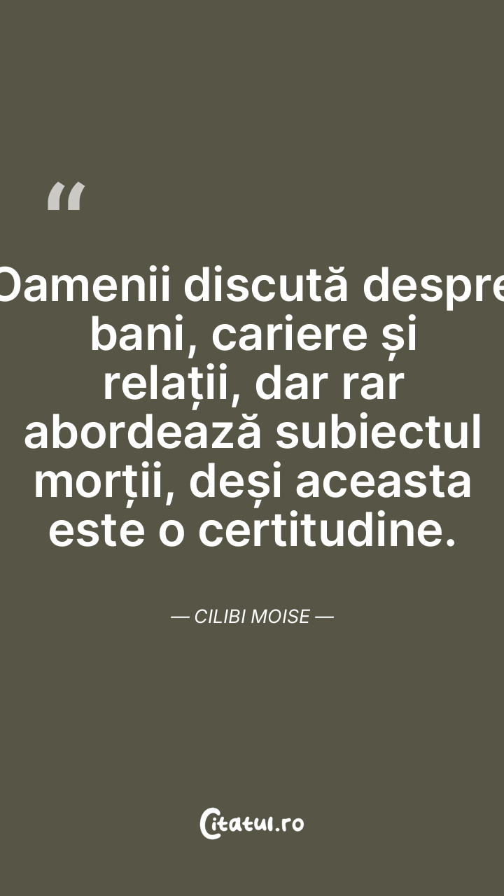 Oamenii discută despre bani, cariere și relații, dar rar abordează subiectul morții, deși aceasta este o certitudine. Cilibi Moise