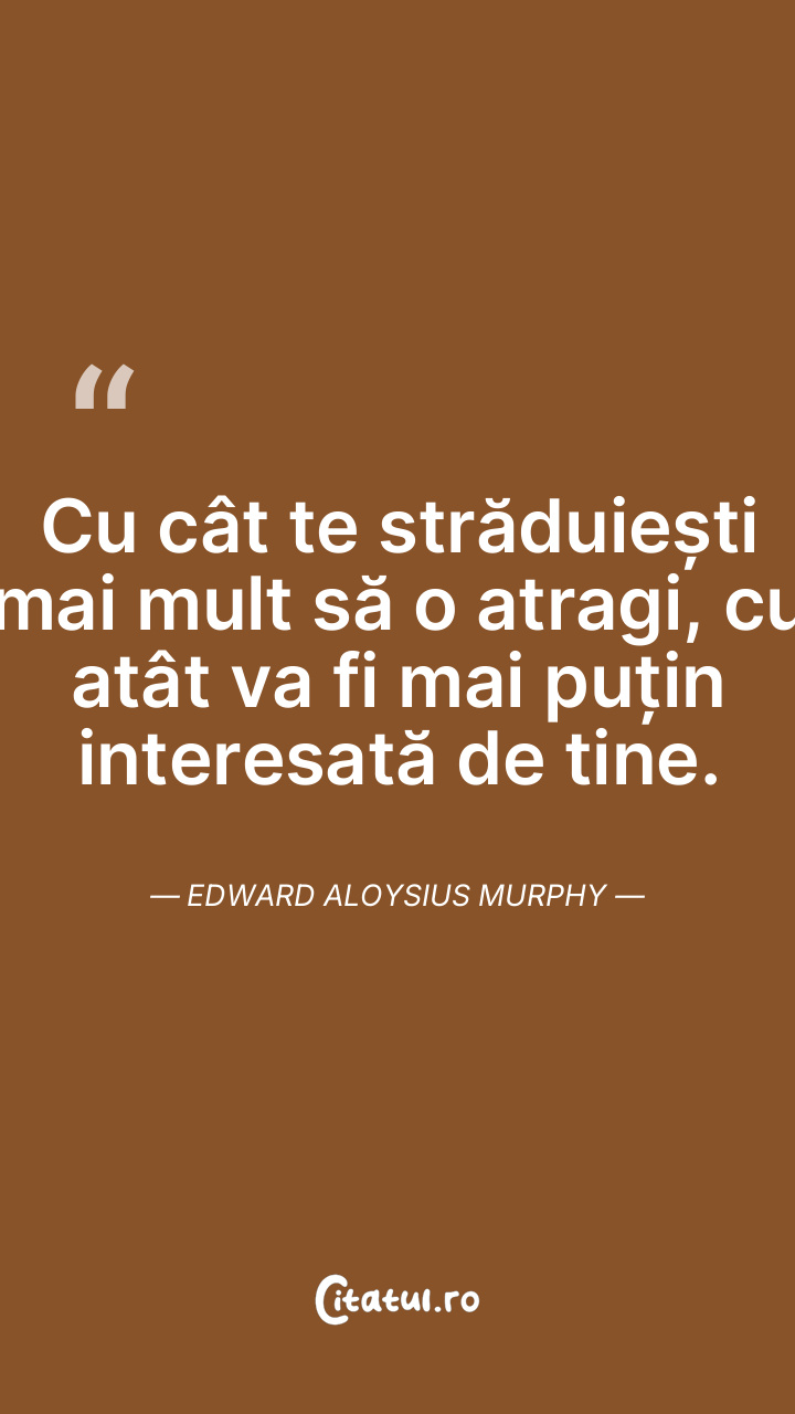Cu cât te străduiești mai mult să o atragi, cu atât va fi mai puțin interesată de tine. Edward Aloysius Murphy