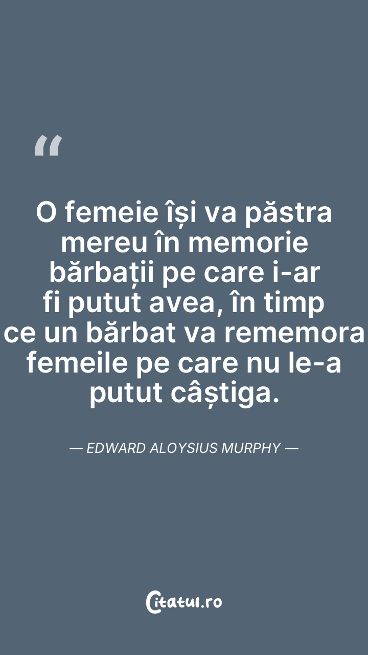 O femeie își va păstra mereu în memorie bărbații pe care i-ar fi putut avea, în timp ce un bărbat va rememora femeile pe care nu le-a putut câștiga. Edward Aloysius Murphy