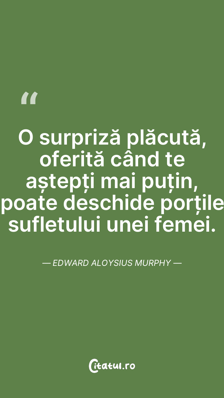 O surpriză plăcută, oferită când te aștepți mai puțin, poate deschide porțile sufletului unei femei. Edward Aloysius Murphy