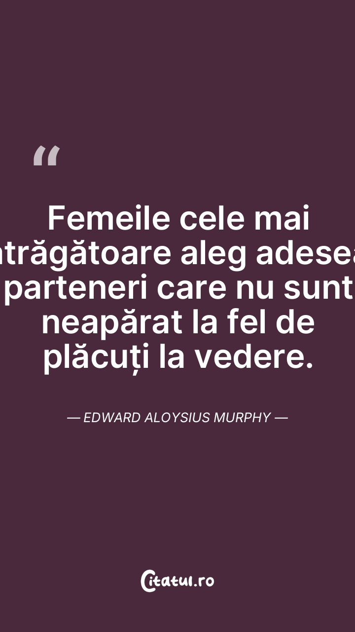 Femeile cele mai atrăgătoare aleg adesea parteneri care nu sunt neapărat la fel de plăcuți la vedere. Edward Aloysius Murphy