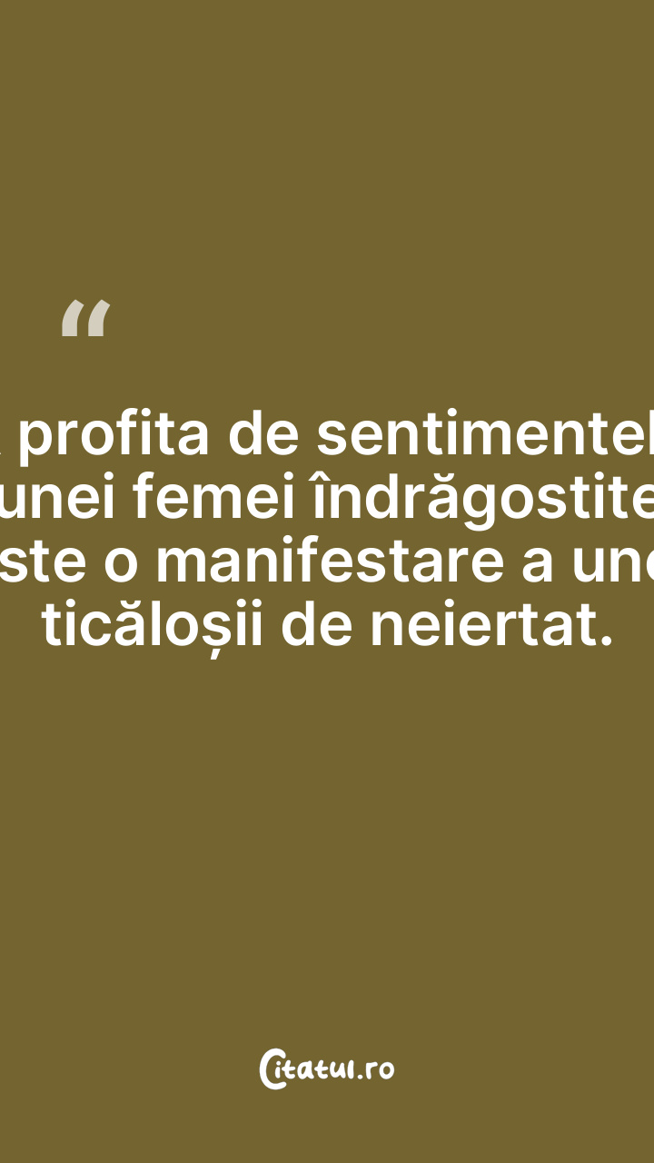 A profita de sentimentele unei femei îndrăgostite este o manifestare a unei ticăloșii de neiertat.
