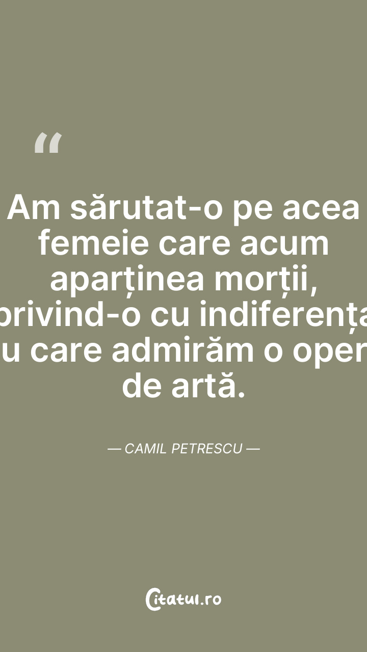 Am sărutat-o pe acea femeie care acum aparținea morții, privind-o cu indiferența cu care admirăm o operă de artă. Camil Petrescu