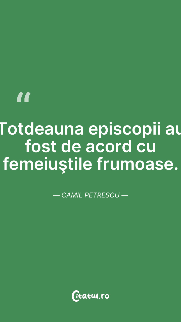 Totdeauna episcopii au fost de acord cu femeiuştile frumoase. Camil Petrescu