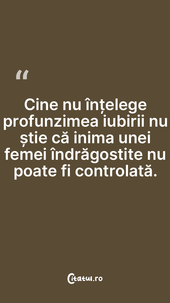 Cine nu înțelege profunzimea iubirii nu știe că inima unei femei îndrăgostite nu poate fi controlată.