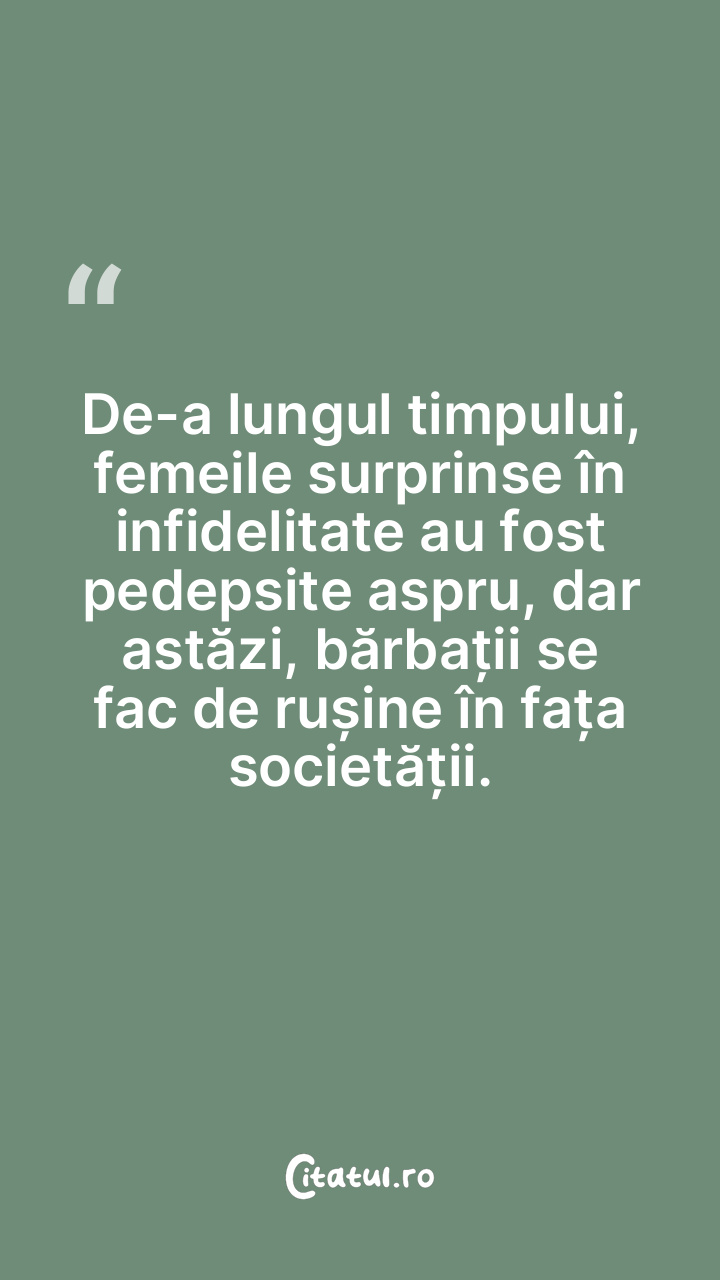 De-a lungul timpului, femeile surprinse în infidelitate au fost pedepsite aspru, dar astăzi, bărbații se fac de rușine în fața societății.