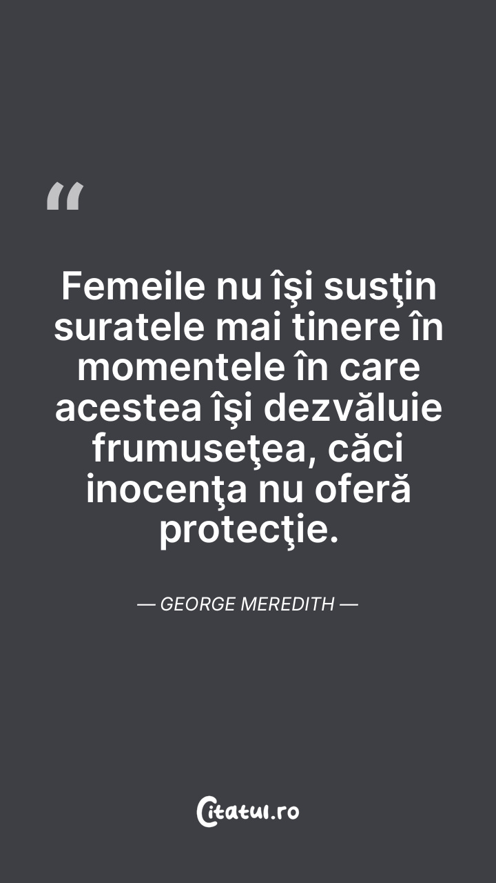 Femeile nu îşi susţin suratele mai tinere în momentele în care acestea îşi dezvăluie frumuseţea, căci inocenţa nu oferă protecţie. George Meredith