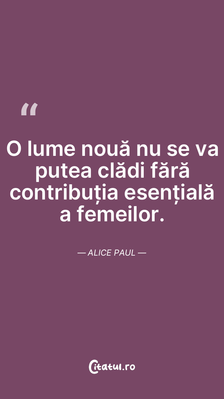 O lume nouă nu se va putea clădi fără contribuția esențială a femeilor. Alice Paul