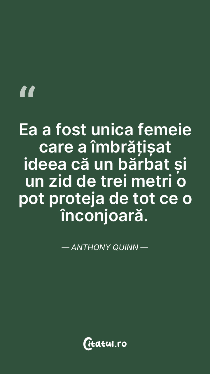 Ea a fost unica femeie care a îmbrățișat ideea că un bărbat și un zid de trei metri o pot proteja de tot ce o înconjoară. Anthony Quinn