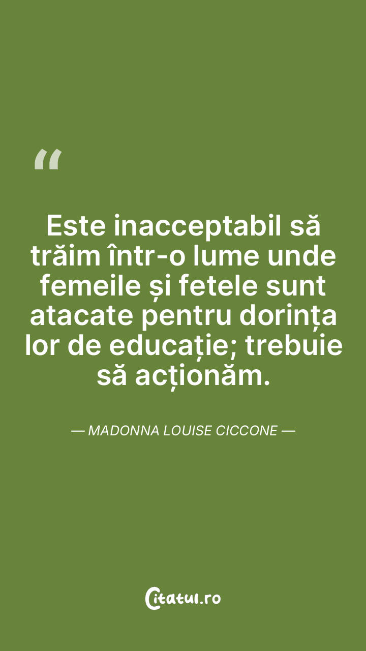 Este inacceptabil să trăim într-o lume unde femeile și fetele sunt atacate pentru dorința lor de educație; trebuie să acționăm. Madonna Louise Ciccone