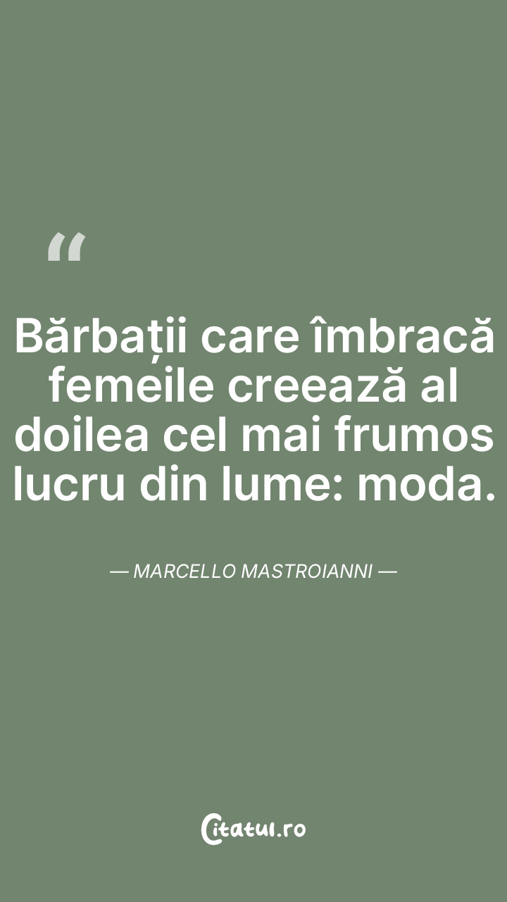 Bărbații care îmbracă femeile creează al doilea cel mai frumos lucru din lume: moda. Marcello Mastroianni