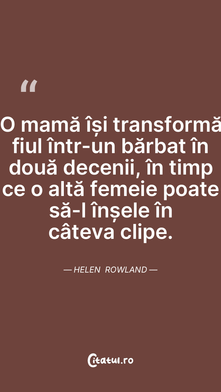 O mamă își transformă fiul într-un bărbat în două decenii, în timp ce o altă femeie poate să-l înșele în câteva clipe. Helen Rowland