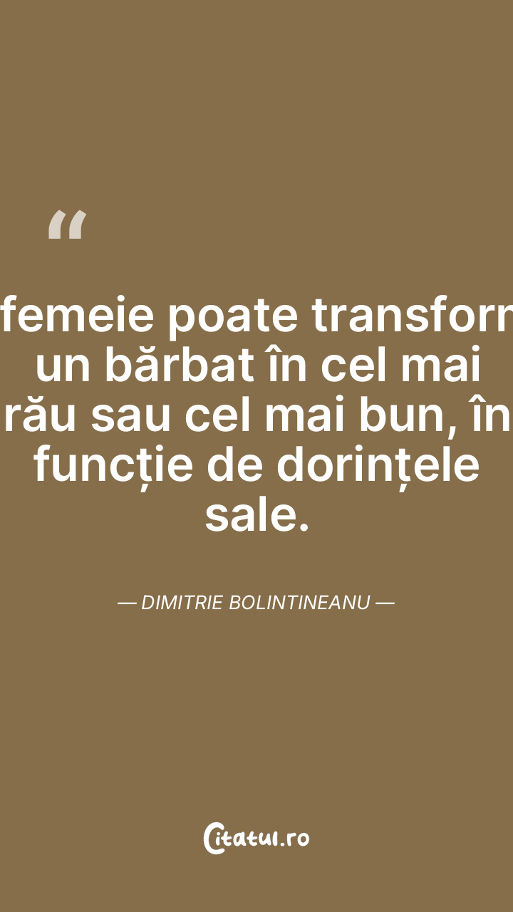 O femeie poate transforma un bărbat în cel mai rău sau cel mai bun, în funcție de dorințele sale. Dimitrie Bolintineanu