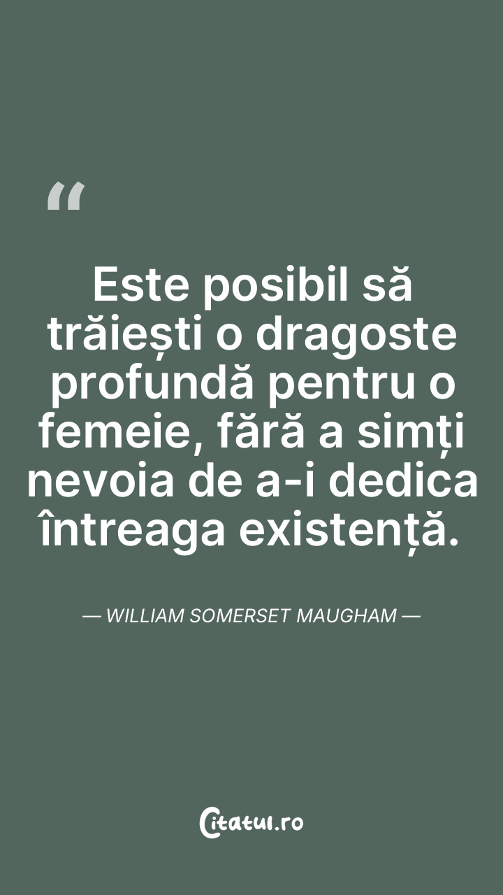 Este posibil să trăiești o dragoste profundă pentru o femeie, fără a simți nevoia de a-i dedica întreaga existență. William Somerset Maugham