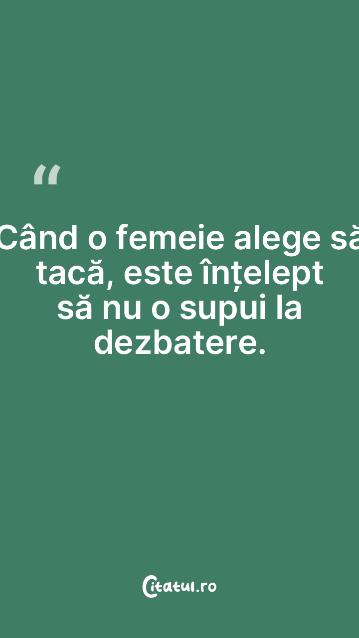 Când o femeie alege să tacă, este înțelept să nu o supui la dezbatere.