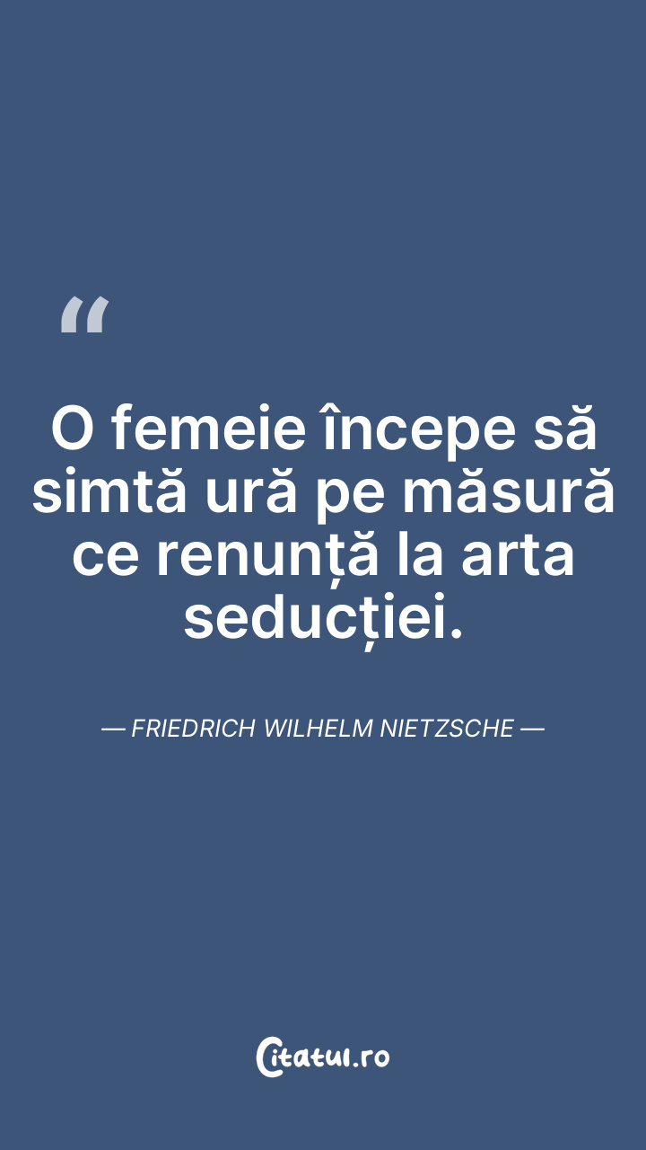 O femeie începe să simtă ură pe măsură ce renunță la arta seducției. Friedrich Wilhelm Nietzsche