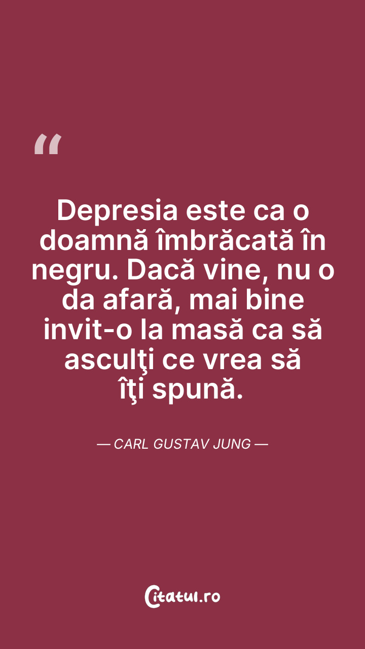 Depresia este ca o doamnă îmbrăcată în negru. Dacă vine, nu o da afară, mai bine invit-o la masă ca să asculţi ce vrea să îţi spună. Carl Gustav Jung